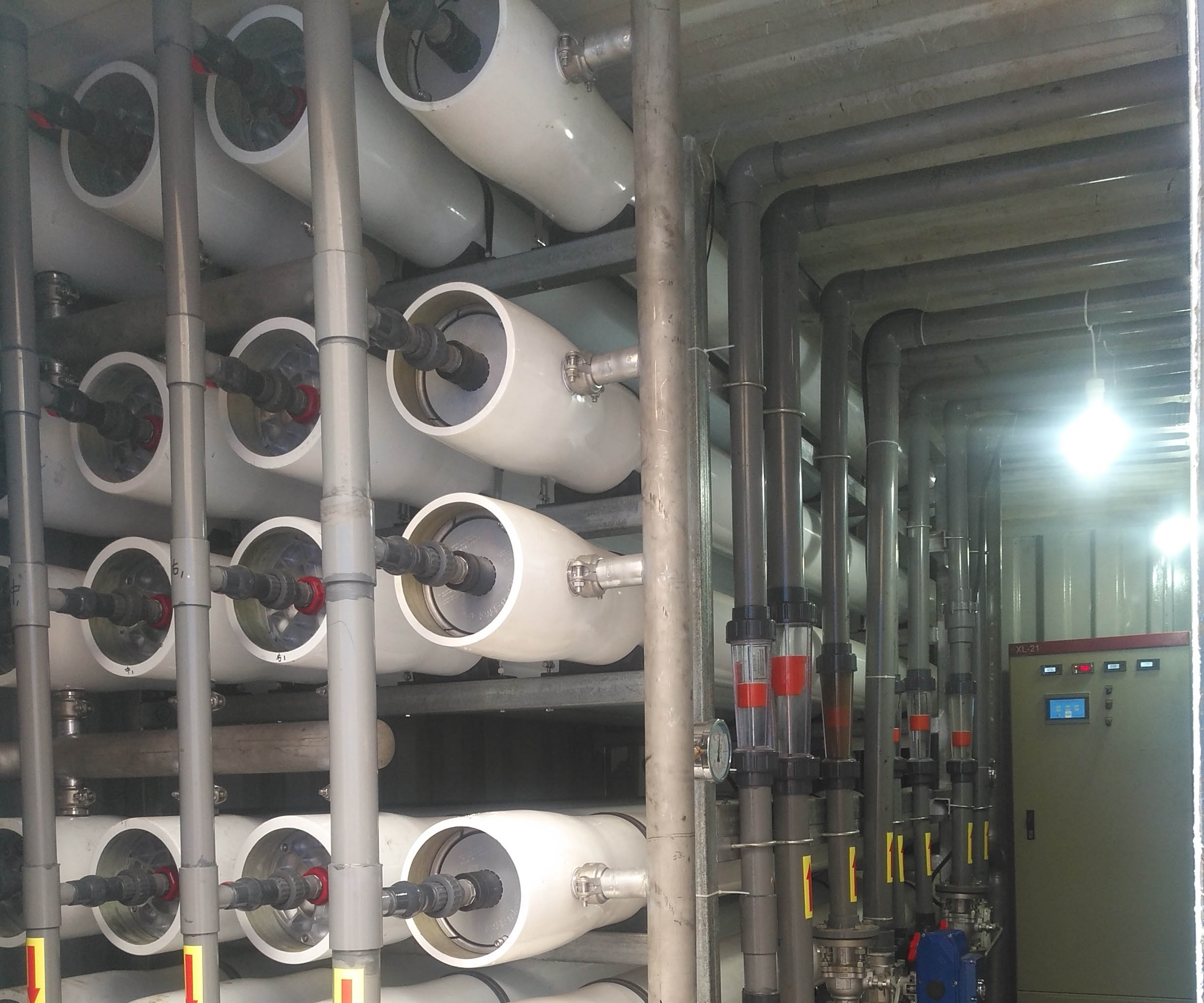工藝流程:預(yù)處理+短程生化系統(tǒng)+兩級(jí)RO膜(集裝箱式)